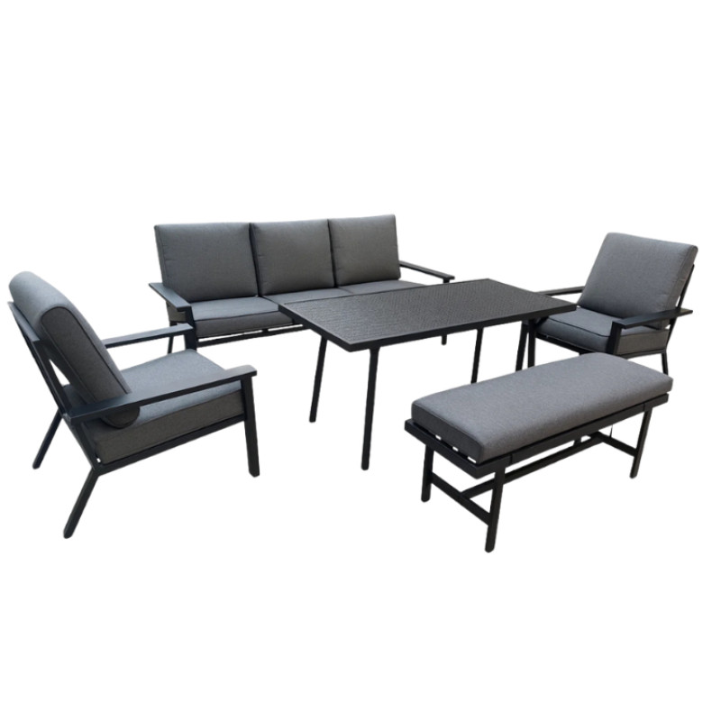 Bağ Dəsti Divan+2 Kreslo+Masa+skamya Qara | Evimizstore.az
