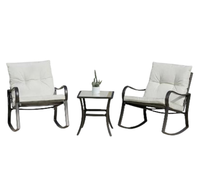 Müxtəlif açıq məkan üslublarına və parametrlərinə uyğundur.Yüksək sıxlıqlı süngər yastıqları maksimum rahatlıq və istirahət təklif edir.Yellənən kreslo suya davamlı və asan təmizlənən nəfəs ala bilən yastıqla təchiz edilmişdir.