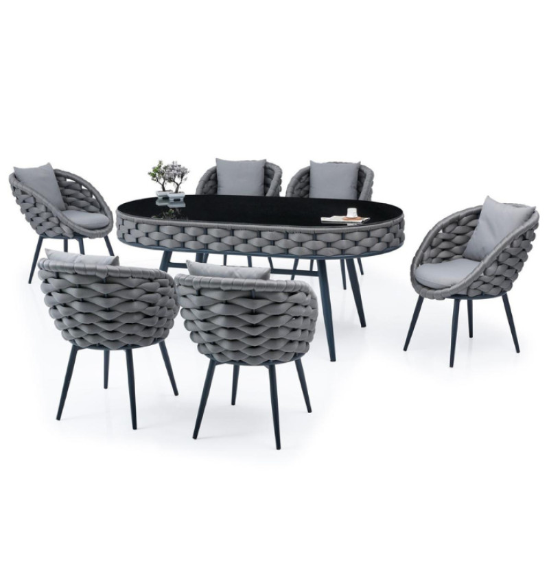 Dubai Viyana Masa Seti Gri 1+6 – 1 masa və 6 stuldan ibarət bu şık və funksional yemək dəsti, evinizin yemək otağına zəriflik və rahatlıq qatır. Keyfiyyətli materiallardan hazırlanmış masa və stullar uzun ömürlü istifadəyə uygundur. Müasir dizaynı ilə həm gündəlik yeməklər, həm də qonaq qəbul etmək üçün idealdır.
