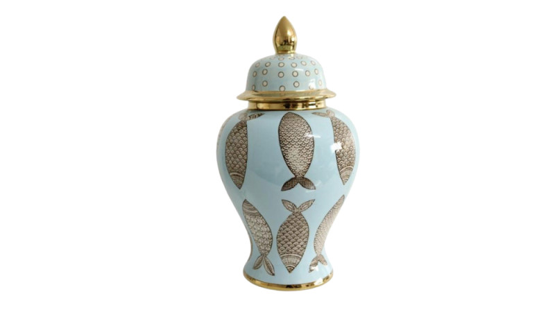 Keramika Vaza Kiçik Qapaqlı Firuzə/Qızılı