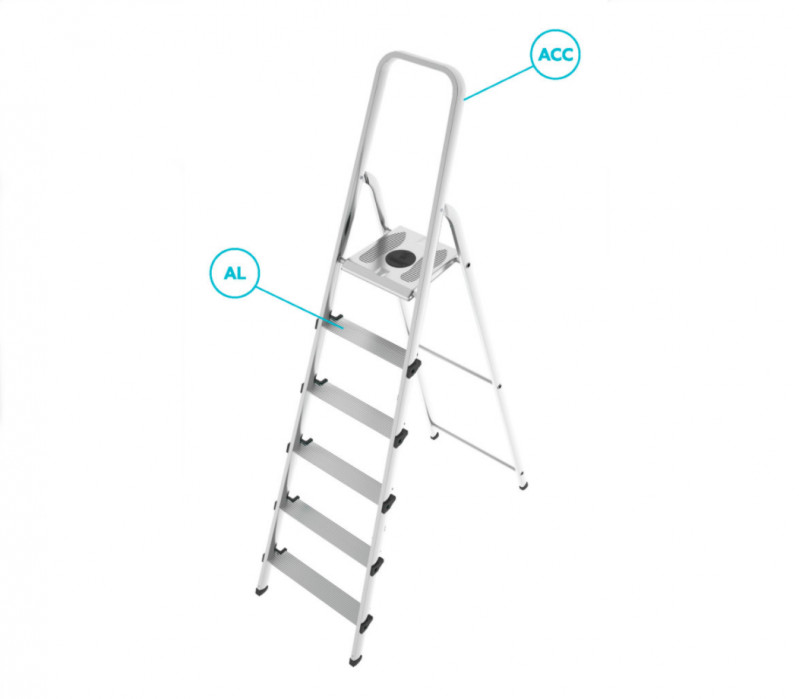 Poladdan 5 pilləli nərdivan, tam anodlaşdırılmış, ultra yüngül, ultra düz (qapalı halda 9 sm). Sürüşməyən enli pillələrlə təchiz edilmişdir. Bu, TÜV-GS tərəfindən sertifikatlaşdırılmış EN 14183-ə uyğun məhsuldur.