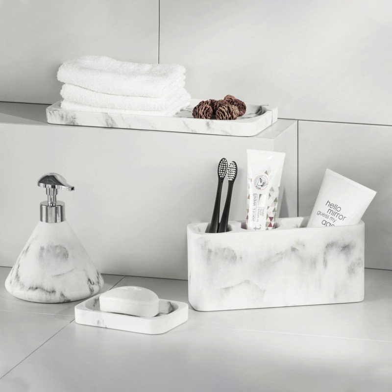 Yüksək keyfiyyətli polirezindən hazırlanmışdır. Dəbdəbəli sadə mərmər dizaynına malikdir. Banyoda diş fırçalarını yerləşdirmək üçün istifadə olunur.