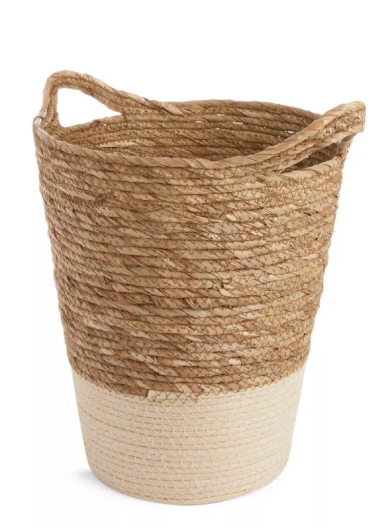 Təbii materialdan hazırlanmış, quplu, 30 sm diametrli saxlama səbəti, evdə əşyaların təşkil olunması üçün ideal seçimdir.