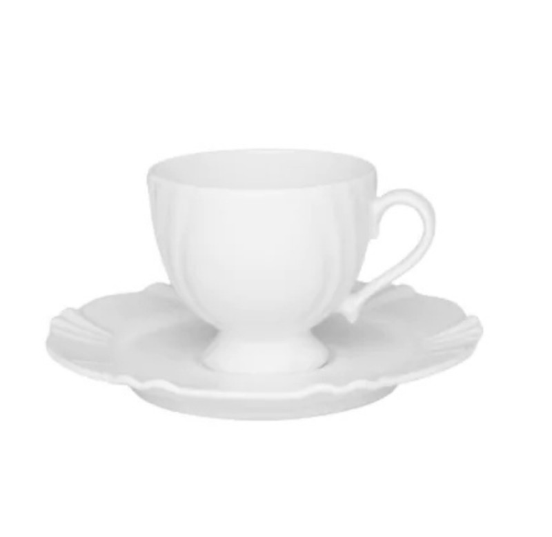 Fincan + Nəlbəki Dəsti Ağ 9×7,8 + 15,5 sm, 6-lı
