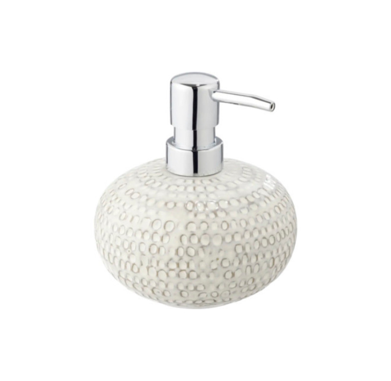 Pergole markasının krem rəngli maye sabun dispenseri. Rahat basma mexanizmi ilə sabunun istifadəsini asanlaşdırır. Dayanıqlı materialdan hazırlanıb və hamam və mətbəx üçün həm funksional, həm də estetik aksessuar kimi uyğundur.
