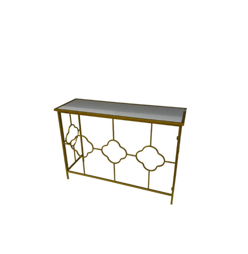 Qızılı metal çərçivə və ağ mərmər səthə malik bu böyük konsol zərif və dəbdəbəli görünüşü ilə interyerə eleqant atmosfer bəxş edir. Möhkəm konstruksiyası sayəsində uzunömürlü istifadə təmin edir. Geniş üst hissəsi dekorativ əşyaların, güzgünün və ya gündəlik aksesuarların yerləşdirilməsi üçün idealdır. Qonaq otağı, dəhliz və salon üçün mükəmməl seçimdir.