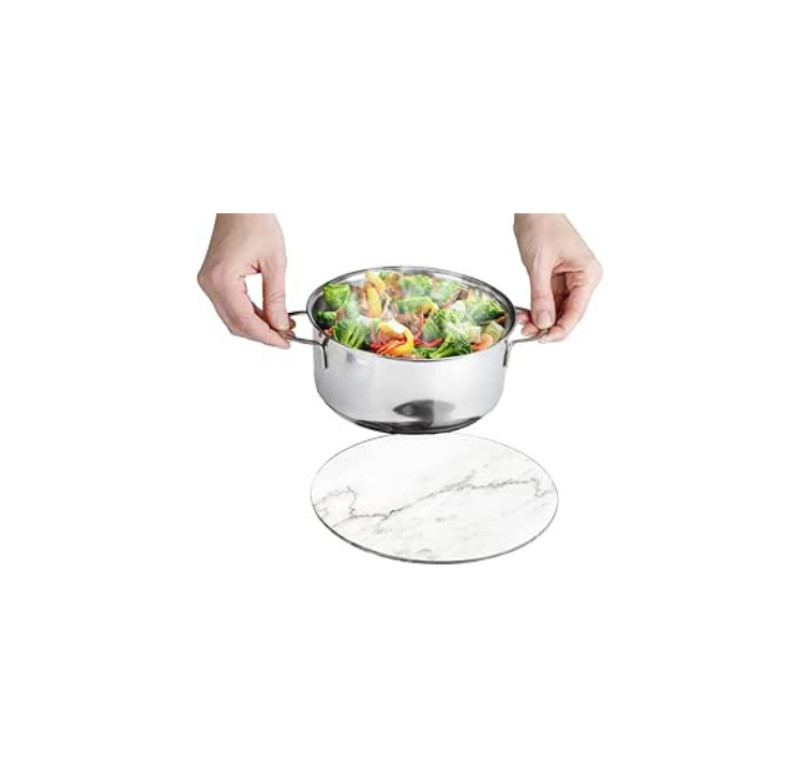 Qazan Altlığı ağ rəngdə, 20 sm diametrdə, mətbəx üçün nəzərdə tutulmuş praktik aksessuardır. İsti qab-qacaqdan masanı və digər səthləri qoruyur. Dayanıqlı və istiliyə davamlı materialdan hazırlanıb, həm estetik, həm də funksional istifadə imkanı təqdim edir.