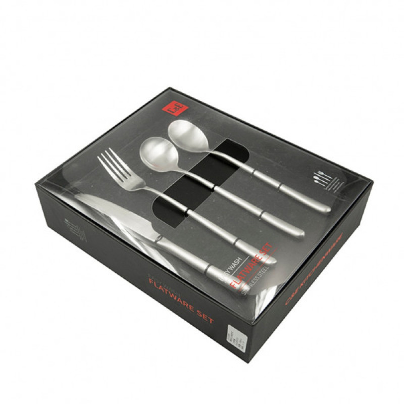 Paslanmaz poladdan hazırlanmış 24 ədətli çəngəl, qaşıq, bıcaq dəsti