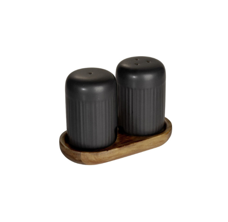 Refia Duz-İstiot Qabı 2×75 ml həcmində, qara rəngdə, mətbəx üçün hazırlanmış praktik aksessuardır. Duz və istiotu səliqəli və rahat şəkildə saxlamağa imkan verir. Keyfiyyətli materialdan istehsal olunub və minimalist dizaynı ilə mətbəx interyerinə şıq görünüş qatır.