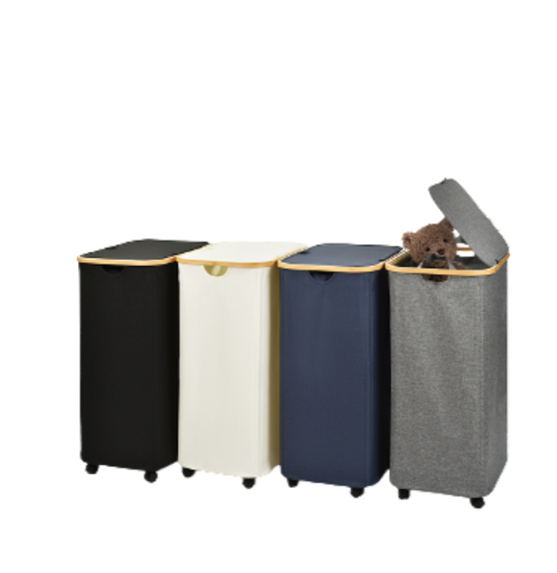 Evdə nizam və rahatlıq üçün ideal seçim! Müasir dizaynlı, təkərli və qapaqlı çamaşır səbətləri paltarlarınızı səliqəli saxlamağa kömək edir. Yumşaq parça örtüklü və daşıması asan olan bu səbət, uşaq oyuncaqları və digər əşyalar üçün də istifadə oluna bilər.