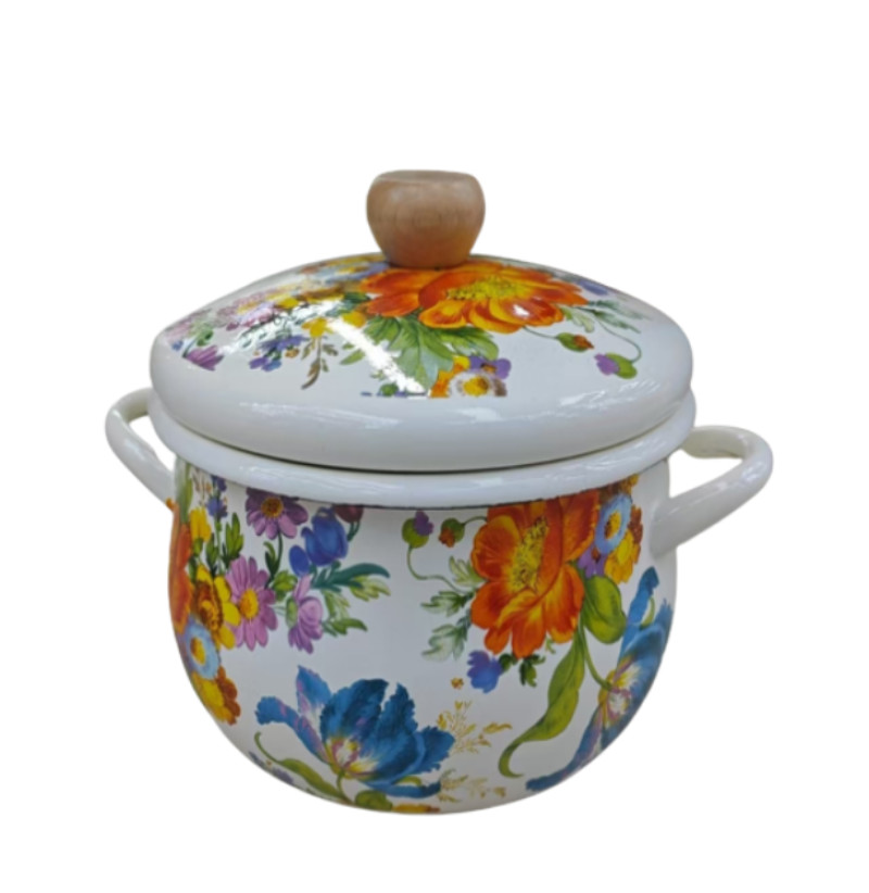 Gözəl güllü dizaynı ilə bu 22 sm-lik qazan mətbəxinizə zəriflik qatır. Emallı səthi istiliyi bərabər paylayır və yeməklərin dadını qoruyur. Qapaqlı və tutacaqlı quruluşu sayəsində istifadəsi rahat və təhlükəsizdir. Həm gündəlik bişirmə, həm də süfrə təqdimatı üçün mükəmməl seçimdir.