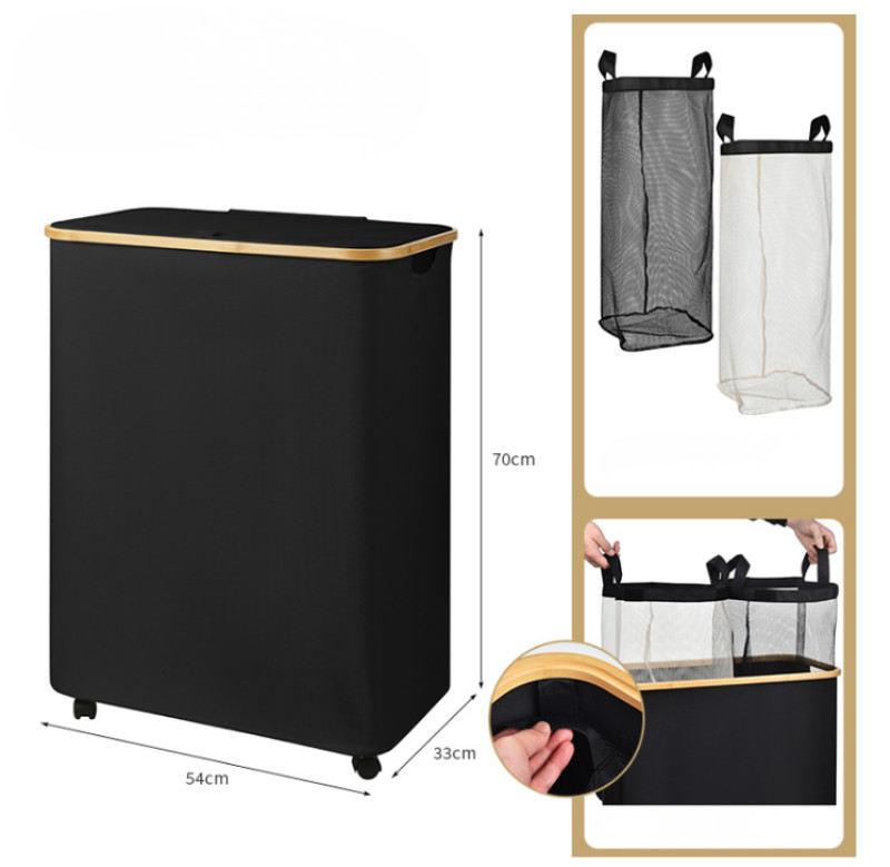 Müasir və praktik dizaynı ilə bu təkərli kirli paltar səbəti paltarların asan toplanması və daşınması üçün ideal seçimdir. İki ayrı tor səbəti sayəsində ağ və rəngli paltarları rahatlıqla ayıra bilərsiniz. Qapaqlı forması gigiyenik saxlanmanı təmin edir, təkərləri isə səbəti rahat hərəkət etdirməyə imkan verir. Hamam və ya paltar yuma sahələri üçün mükəmməldir.