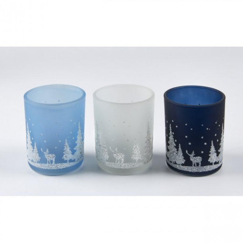 Стеклянные новогодние подсвечники в трёх цветах
