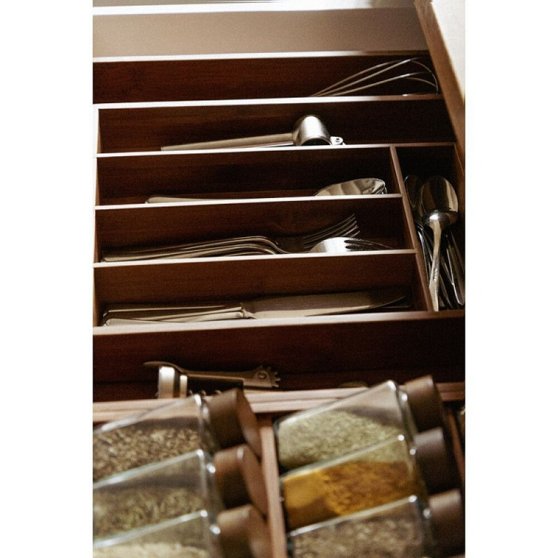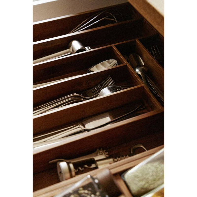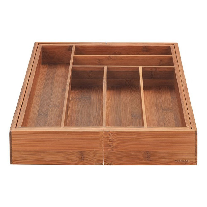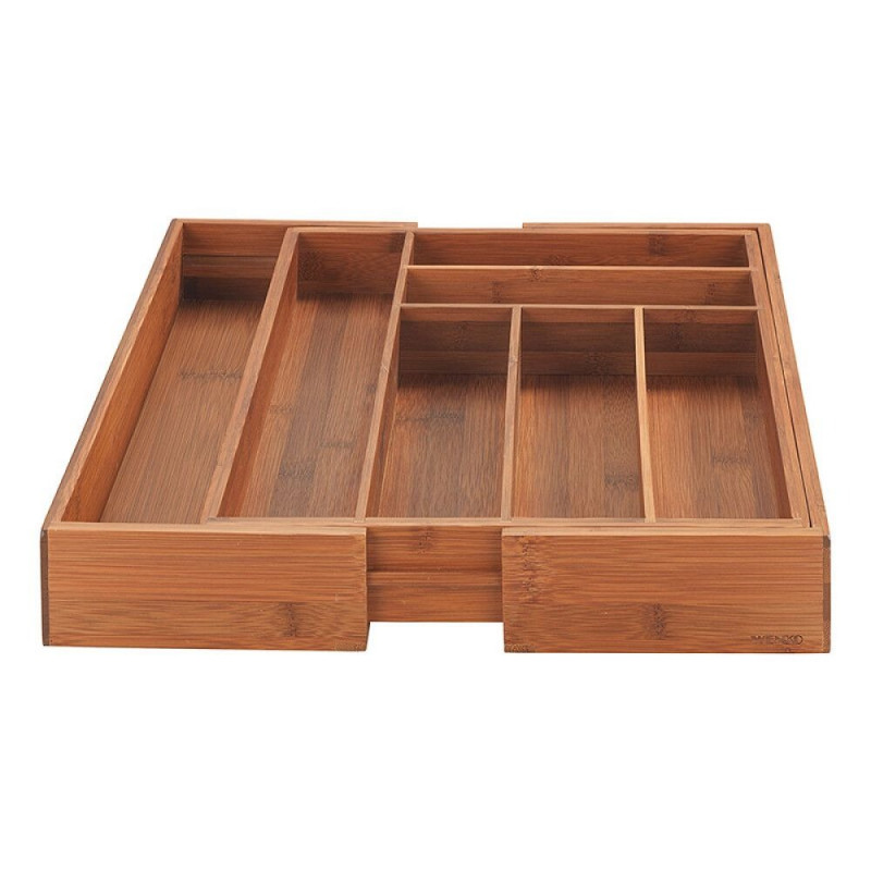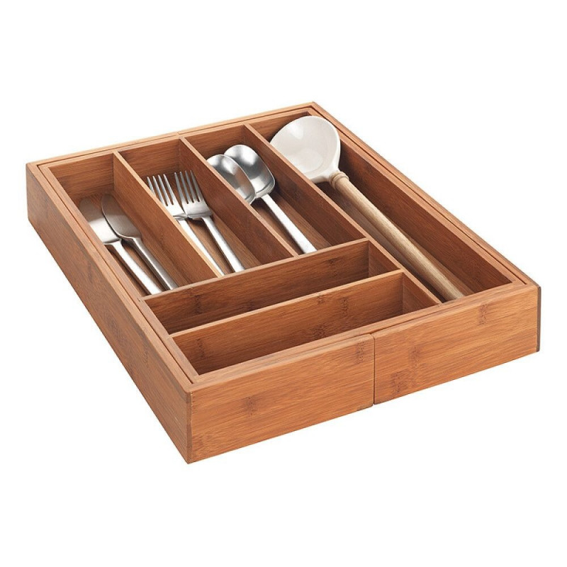 100% натуральный бамбук, прочная конструкция. Легко чистится. 7 длинных отделений. Идеально подходит для кухонной утвари, посуды и столовых приборов. Подходит для большинства ящиков стандартного размера.