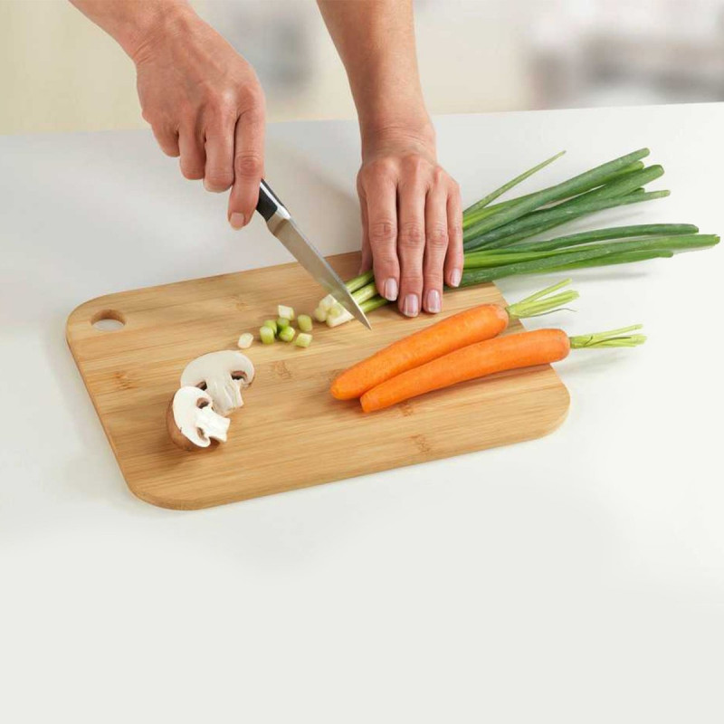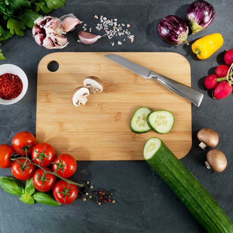 Доска экологически чистая – изготовлена из бамбука. Доска защищает лезвие от повреждений, используется с двух сторон, что делает ее практичной и одинаково отлично подходит для разделки рыбы и мяса, а также фруктов и овощей. Кроме того, благодаря своему утонченному внешнему виду он также идеально подходит для сервировки.