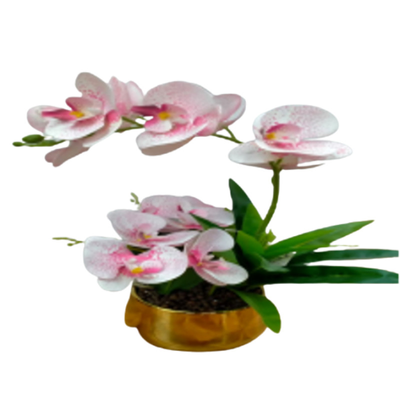 Zərif və eleqant görünüşə malik bu süni orxideya dibçəkdə təqdim olunur və interyerə klassik gözəllik qatır. Canlıya bənzər detalları ilə uzunömürlü dekorativ elementdir. Baxım tələb etmir, həm ev, həm də ofis məkanları üçün uyğundur. Dekorativ dibçəyi sayəsində istənilən məkana zövqlü atmosfer bəxş edir.