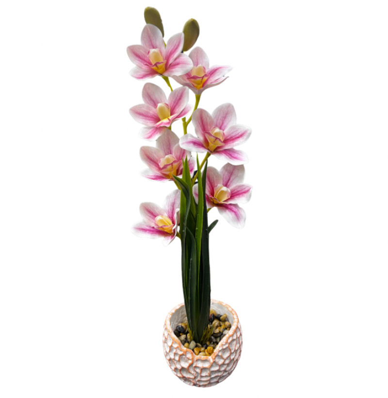 Dibçəkdə süni gül orxideya (çəhrayı) – zərif rəngi və incə dizaynı ilə məkanlara romantik və zövqlü bir toxunuş qatır. Yüksək keyfiyyətli materialdan hazırlanmış bu süni orxideya təbii bitkiyə bənzər görünüşü ilə seçilir. Baxım və su tələb etmədən uzun müddət estetikliyini qoruyur. Ev, ofis və ya hədiyyəlik dekor üçün mükəmməl seçimdir.