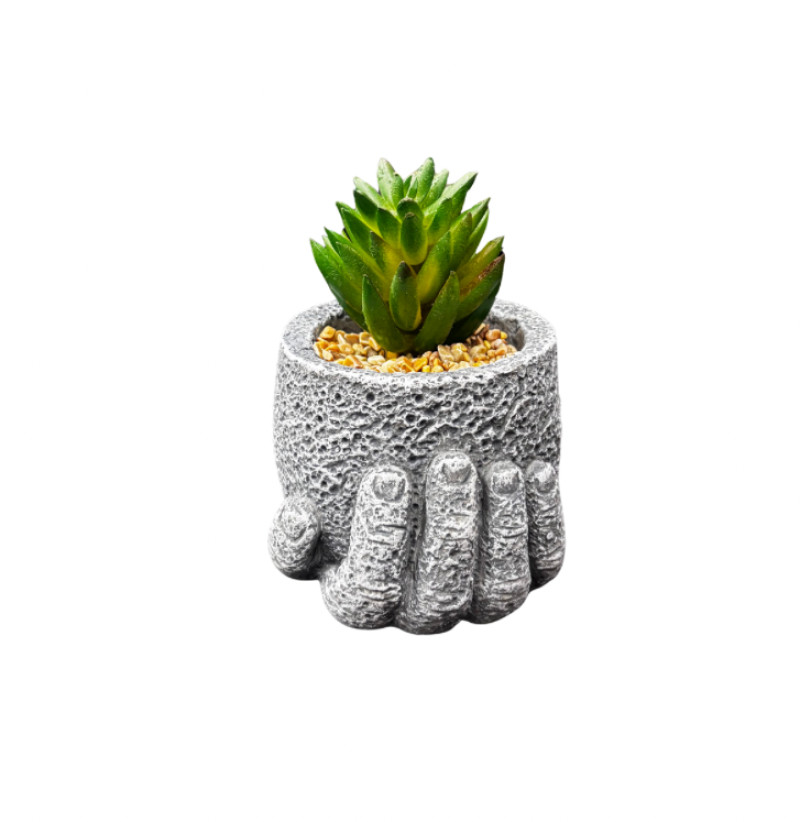 Süni Sukkulent Dıbçək “Əl” — zərif və simvolik dekor elementi. “Əl” formalı dibçək içindəki sukkulentlə birlikdə həm təbiiliyi, həm də bədii ifadəni birləşdirir. Baxım tələb etmədən interyerə müasir və sakit bir aura əlavə edir.