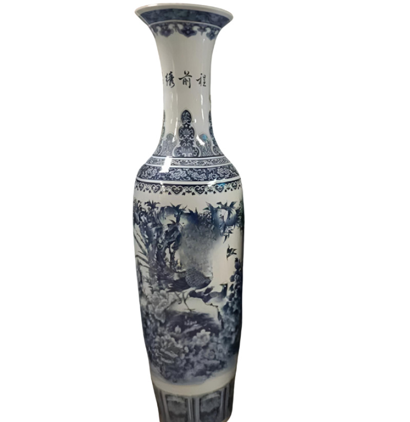 Keramik Vaza Ağ Göy Naxıshlı Qushlar 140cm
